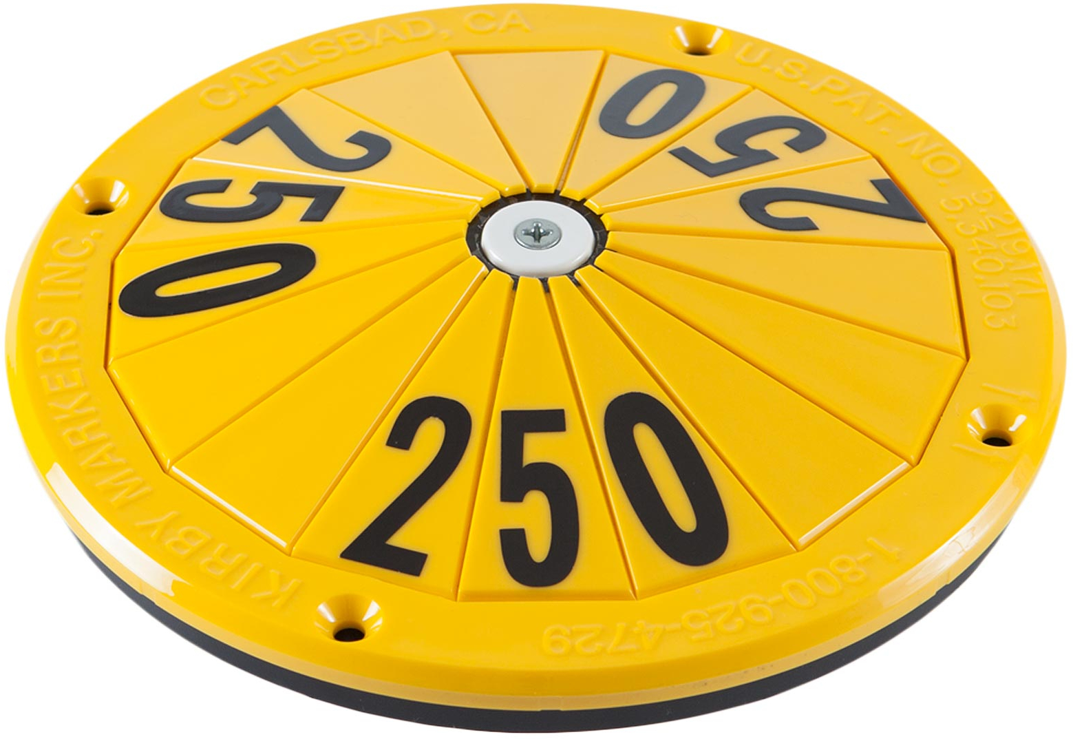 Kirby Markers are 10,5" in diameter and are raised 2" making them visible on the golf course. |