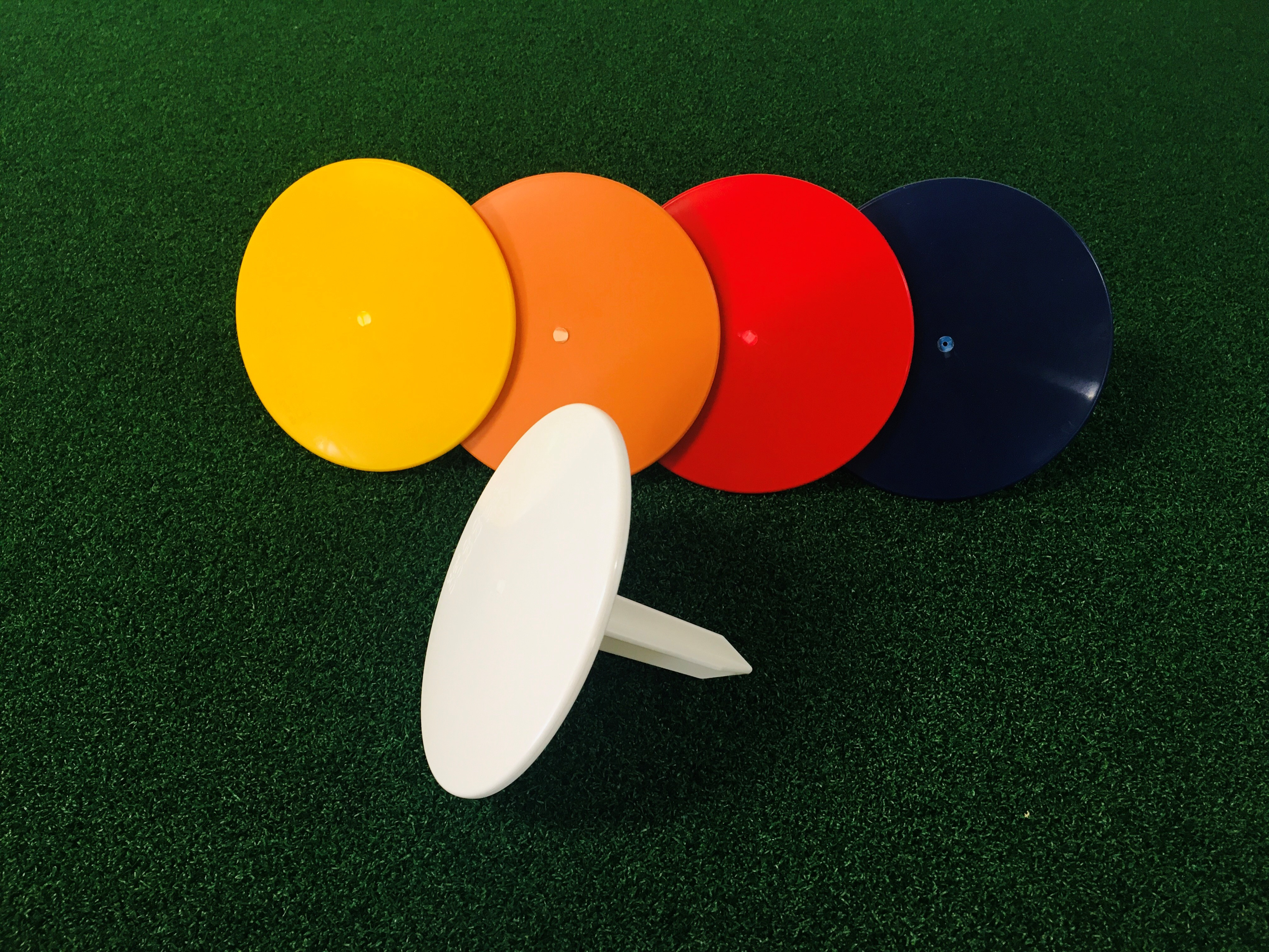 Markeringsplader i ø185 mm til teesteder, hazzarder, fairways og mange andre steder. Gennemfarvet plast med UV beskytteles sørger for at farven holder godt. Udskifteligt spyd.