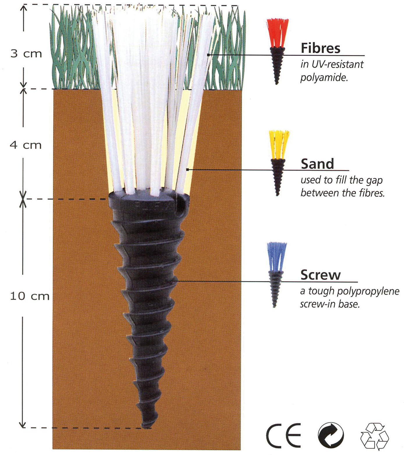 En fleksibel fairwaymarkering i forskellige og meget synlige farver. Røret sættes ned i jorden mid i fairwayen, hvorved den lange og fleksible markering er synlig på lang afstand. Colorflex markeringen vil ganske enkelt bøje når græsset klippes (move-over funktionalitet) uden at man behøver at flytte eller justere markeringen.
