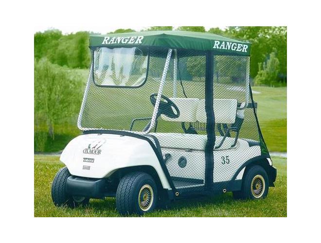 The Ranger Protector is made of strong polypropylene netting that stops golf ball penetration. Eliminates the need for heavy, expensive metal cages. Front windshield provides clear vision and safety. Fits all standard size golf cars, including the Club Car DS and Precedent models, the E-Z-GO TXT and RXV models as well as 2004 and older Yamaha models.