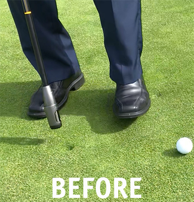 Ikke alene reperarer værktøjet nedslagsmærker, men fjedermekanismen sørger for at turfen trykkes ned samtidig med piggene trækkes tilbage. Herved kommer luft til på samme tid.