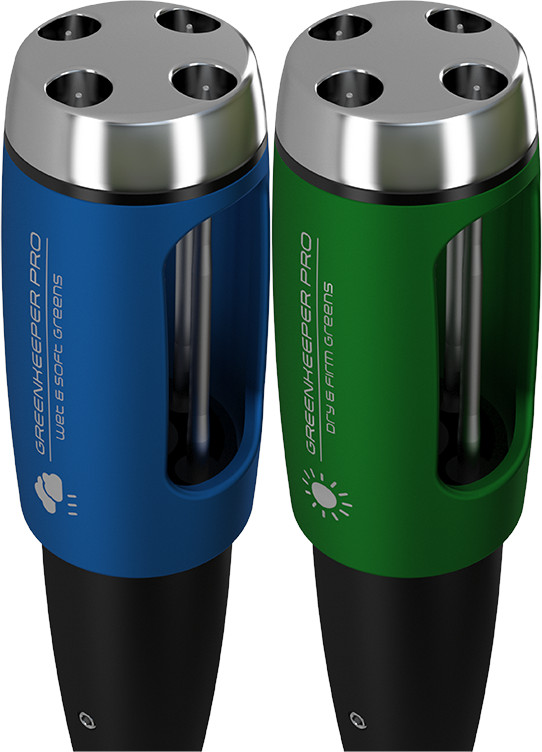 Medfølger: To forskellige udskiftelige hoveder, som hver især passer bedre til tørre og faste greens eller til våde og bløde greens.