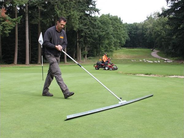 3 meters wide brush cleans the whole green in no time. The hairs of the brush gather all the dew and the drops will enter the soil.