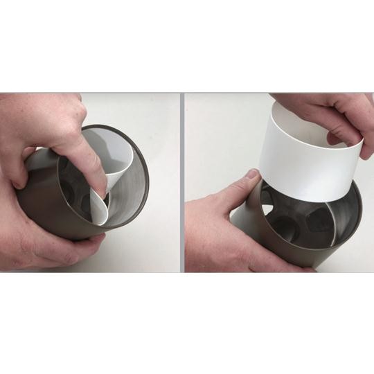 Hulkop i aluminium med udskiftelige indsatser i plastik, der er nemme at udskifte.